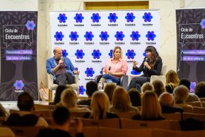 Julieta (Cayetina) y Nicolas (Cayetano) Cajg, con Tatiana Schapiro fueron los protagonistas del Ciclo de Encuentros-Pensamiento y cultura con raíces solidarias.